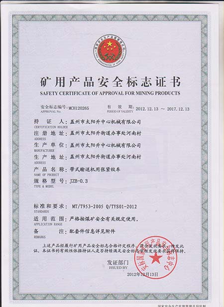 張緊絞車安標